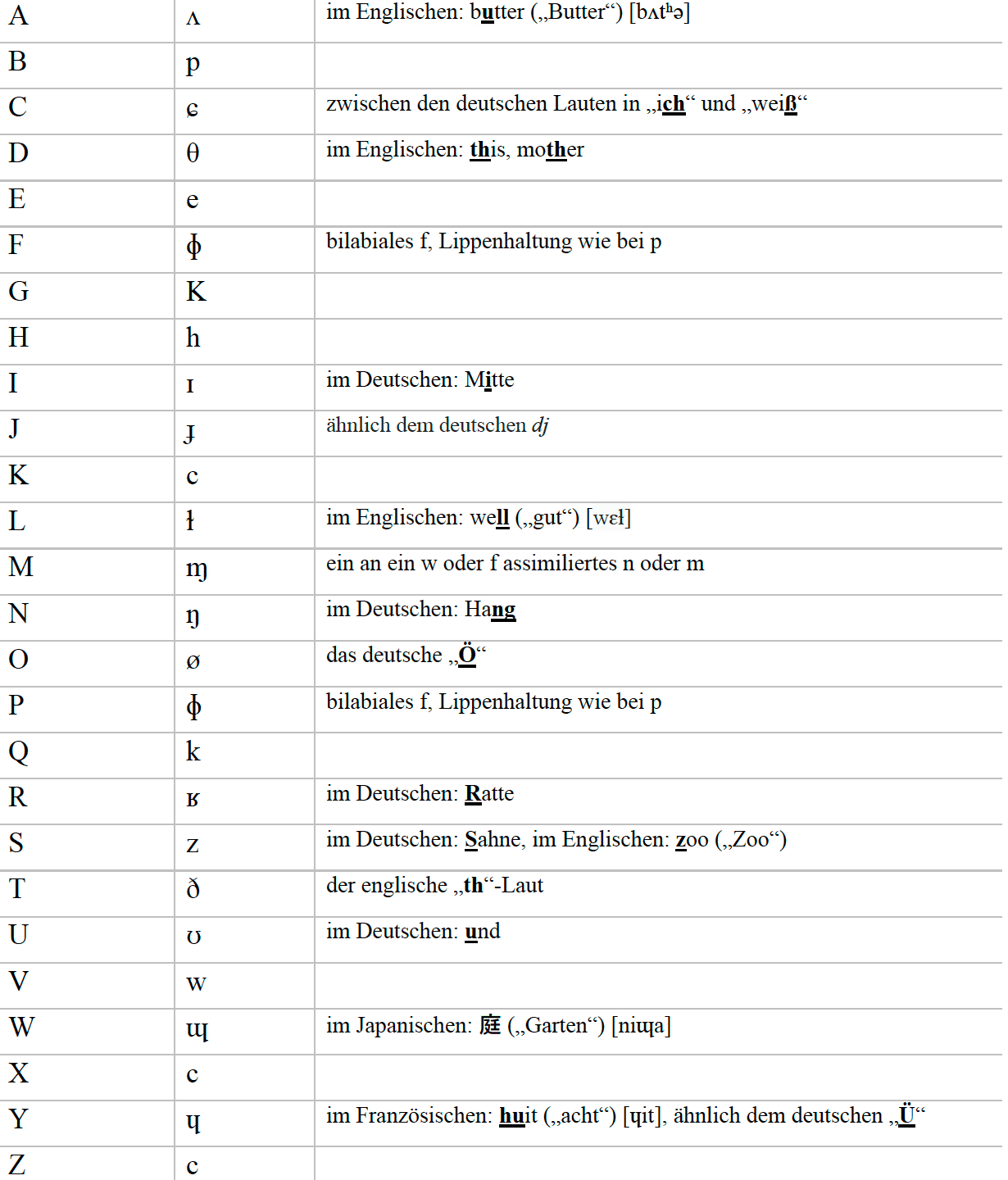 Alphabets ein passendes Gegenstück im IPA gefunden. Es wird also immer ein lateinischer Versal mit einer Minuskel des phonetischen Alphabets kombiniert, die ihm in der Aussprache ähnelt.