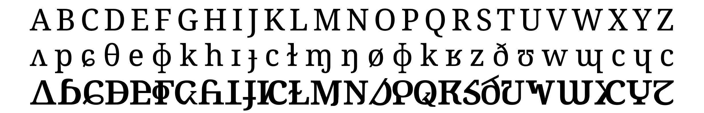Im Kurs »Typografie anwenden« erstellte ich eine Morphfont, die lateinische Versalien der Font »Noto Serif« mit dem Schriftsystem IPA (International Phonetic Alphabet) kombiniert.