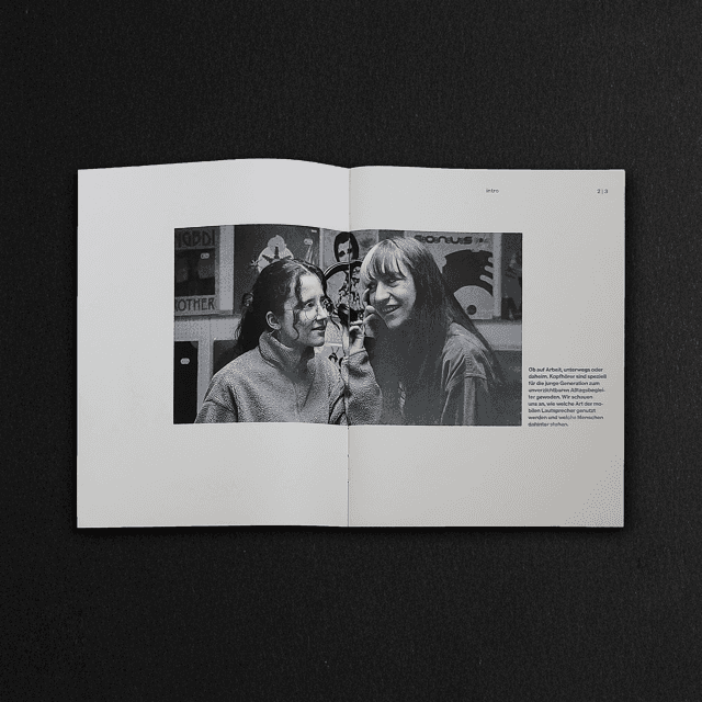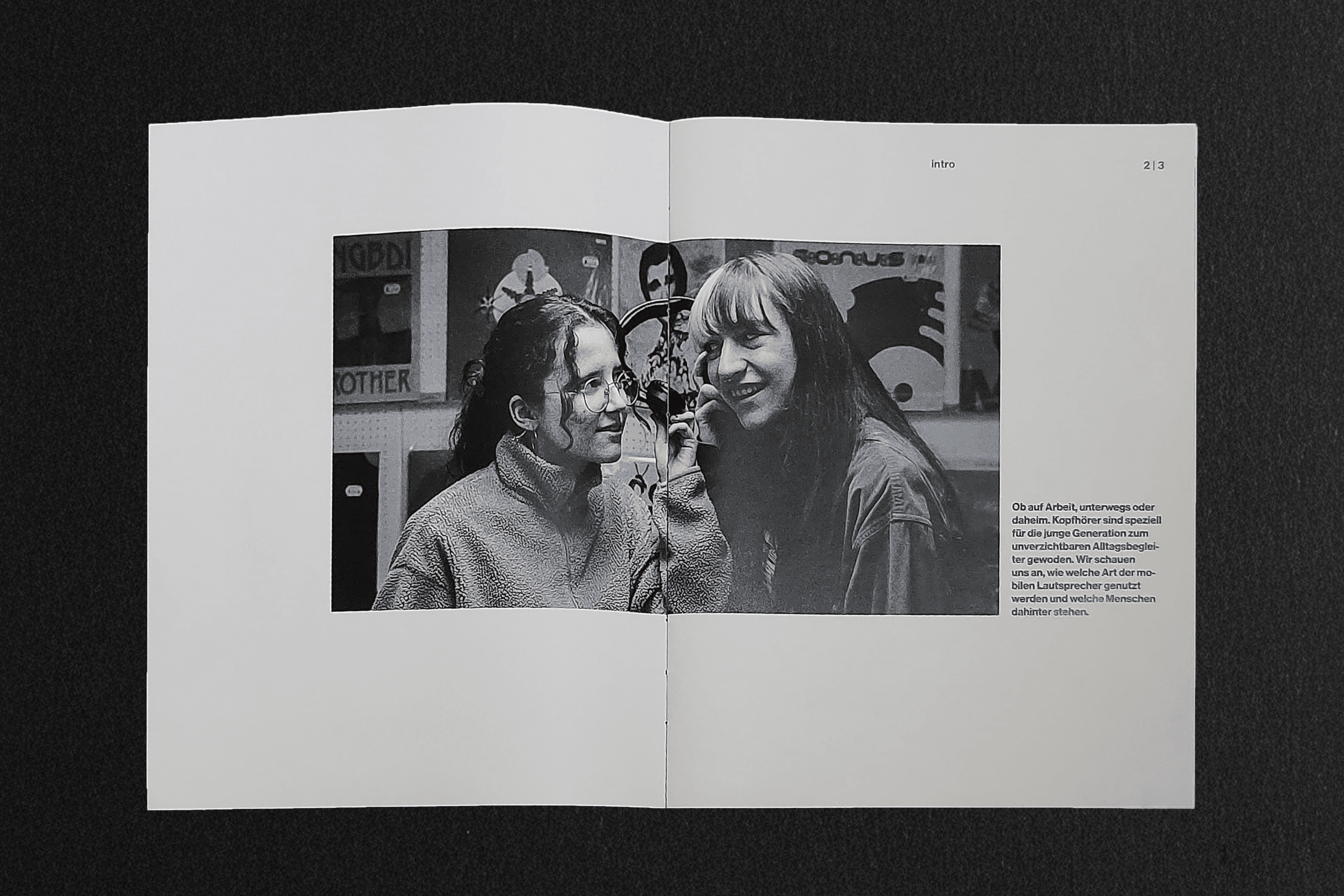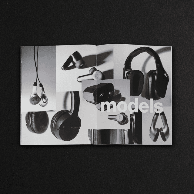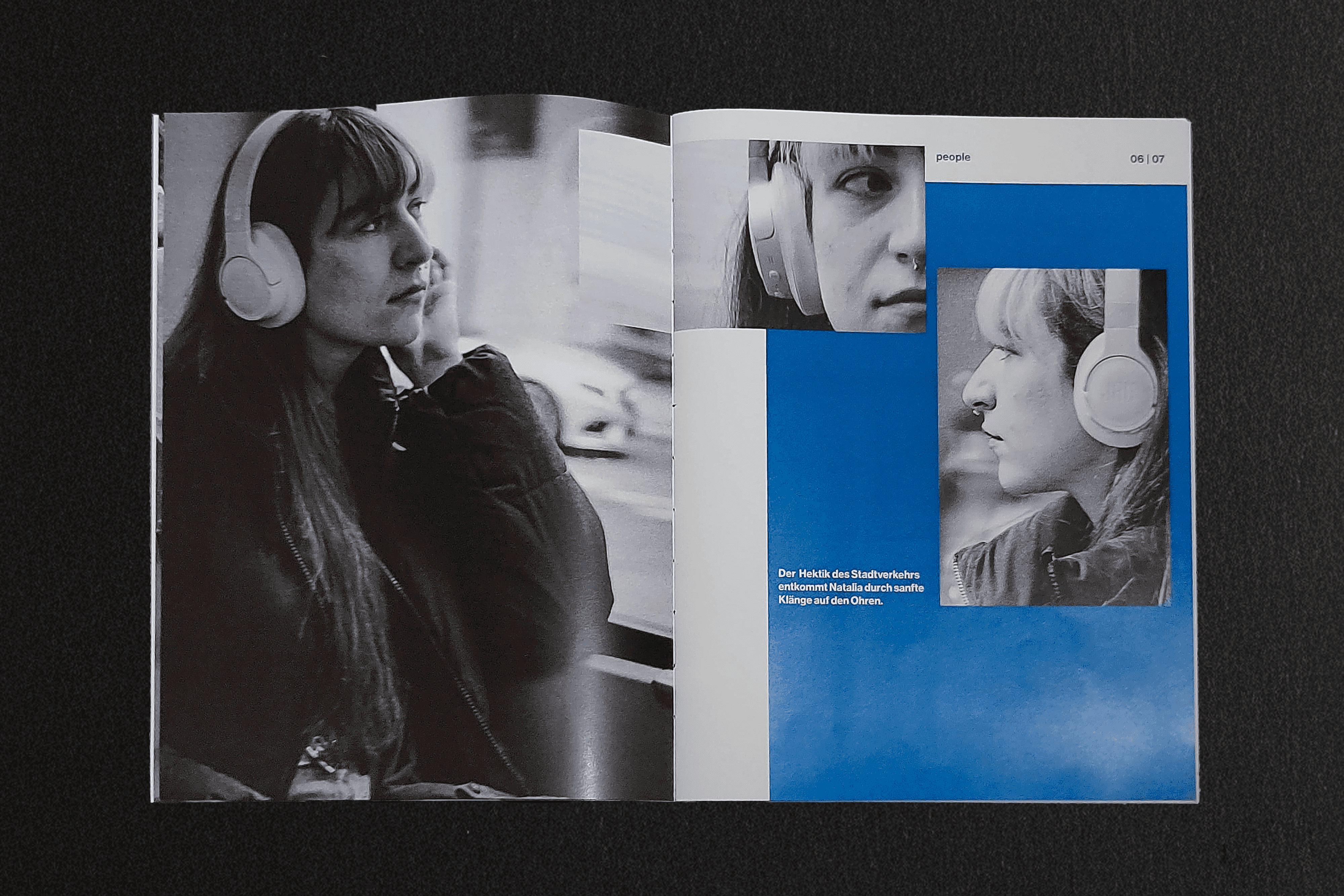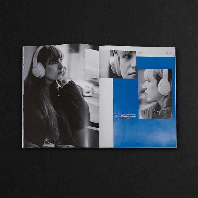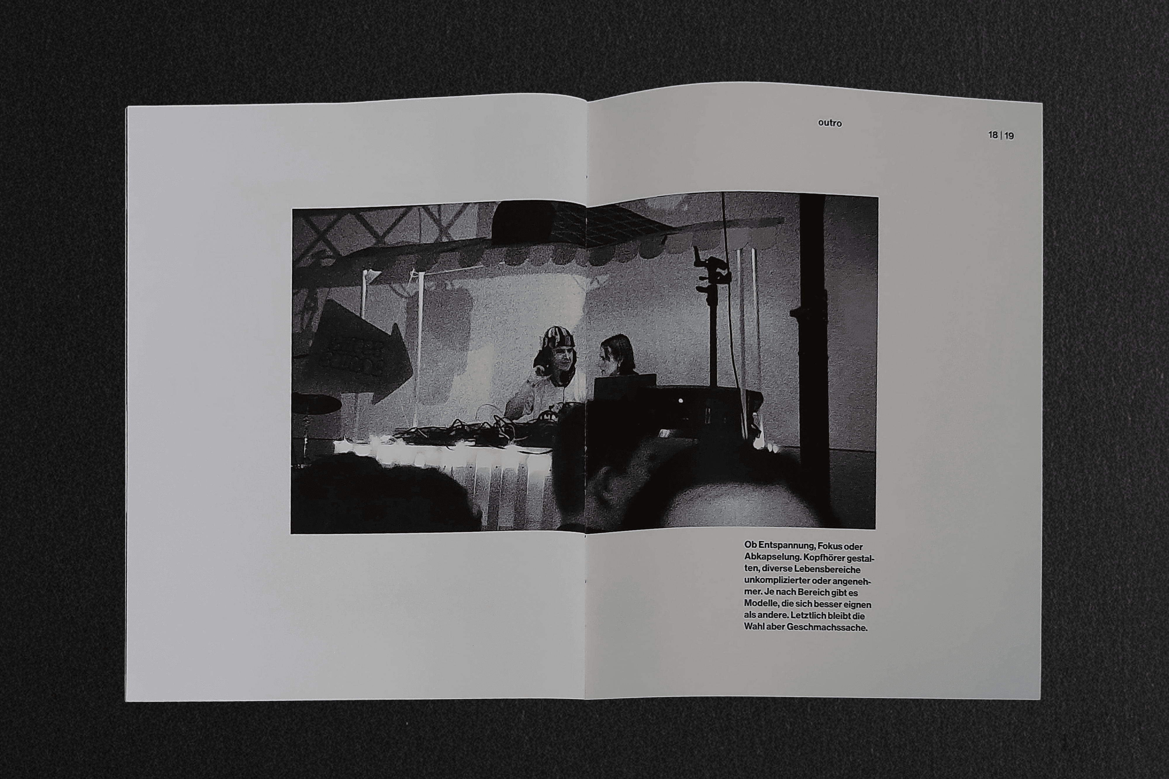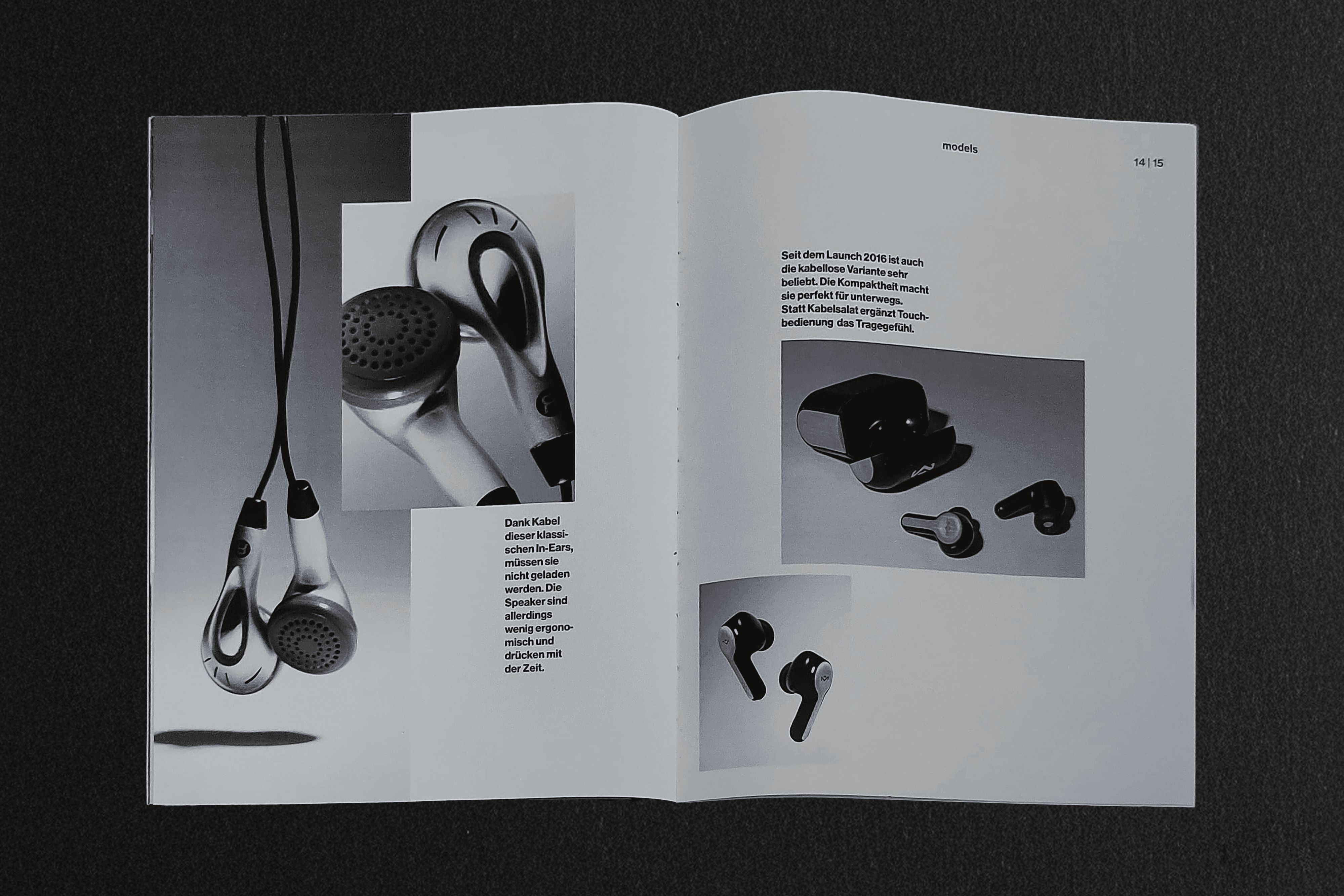 Dieser 16-Seiter ist im Rahmen des Kurses Typo-Bild-Layout entstanden. Der inhaltliche Fokus lag auf Kopfhörern: deren weites Spektrum an Modellen sowie deren Nutzung.
